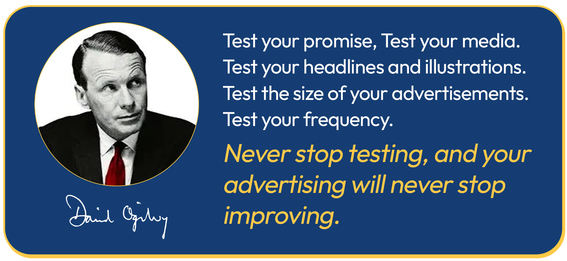 “Never stop testing, and your advertising will never stop improving.” – David Ogilvy